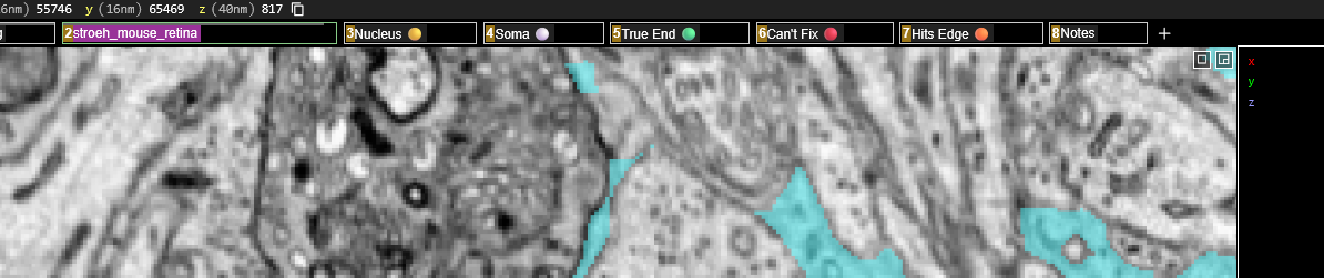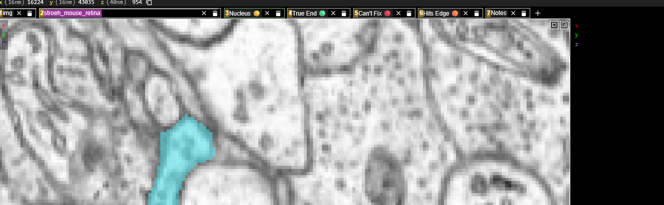 For EW2, we decided to go with a slightly higher affinity threshold for the dataset overall because itâs easier to spot mergers than missing segments. However, ng allows us to be able to cut/view the supervoxels (smallest segmentation) at the same time in the 2D. So we donât have to worry about sliding the threshold slider up and down like we had to in MSTY.
