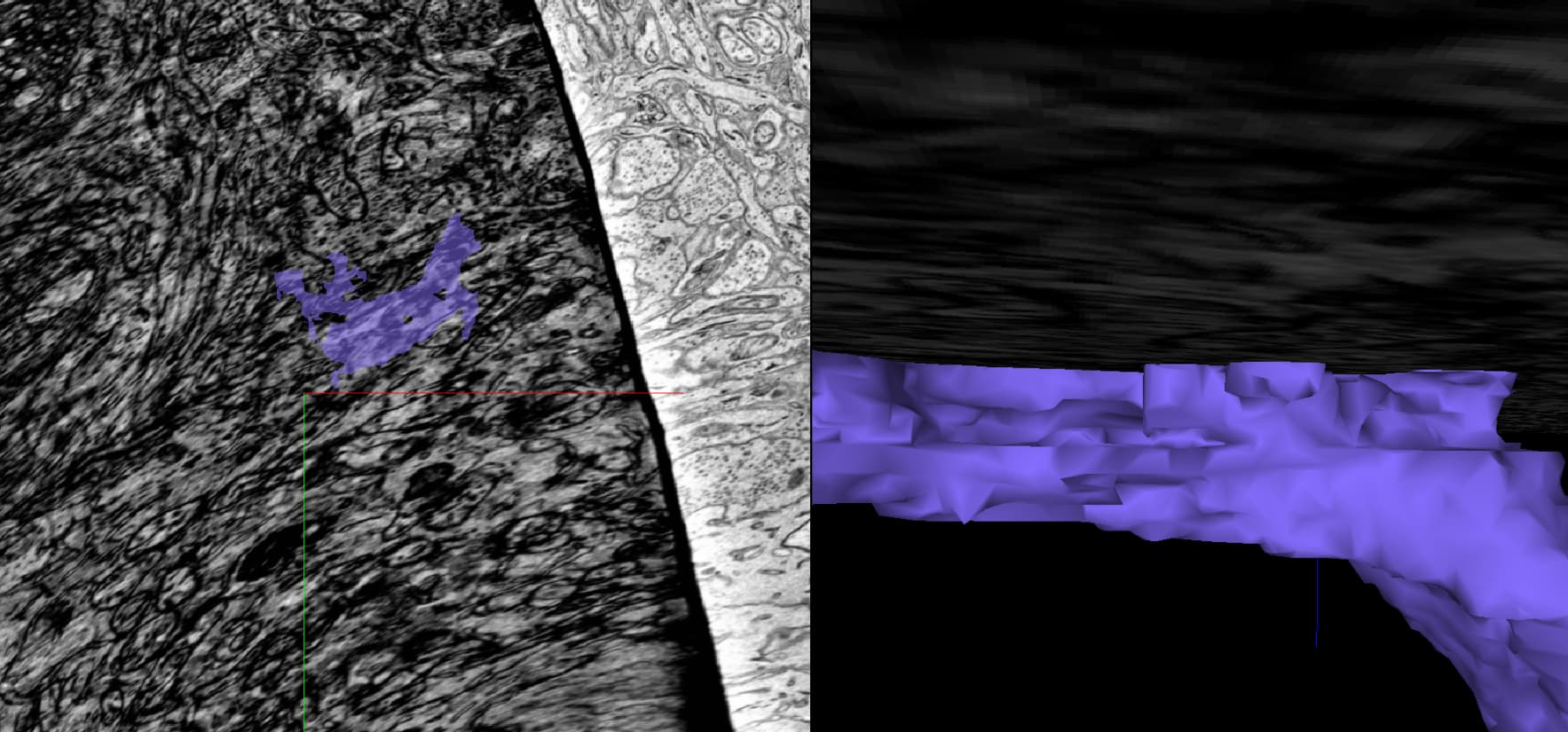 Unfortunately, the supervoxels you see are the smallest segments available in the segmentation. So we sort of just have to go with leaving the supervoxel with what branch makes the most sense and leave gaps like we had to in Eyewire.