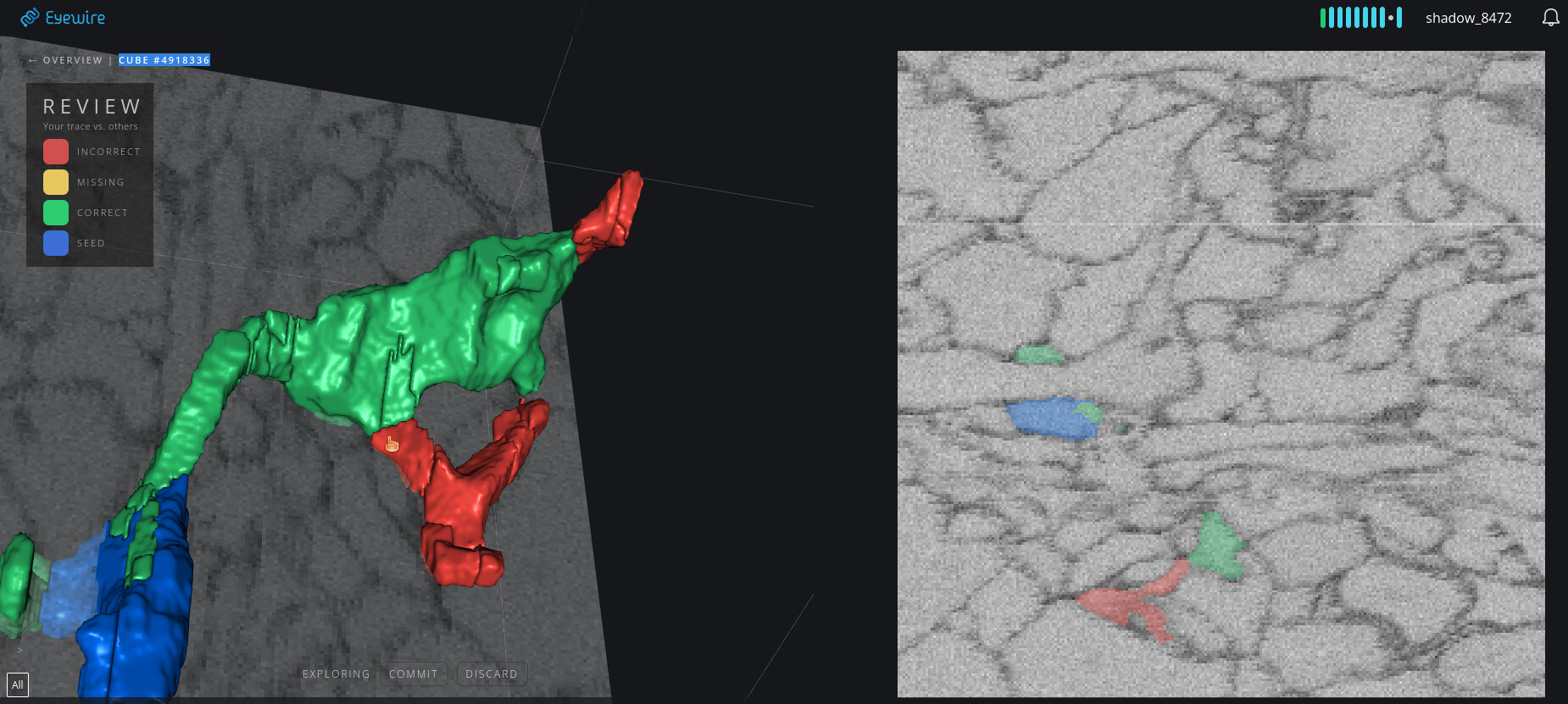Welcome to Eyewire and thanks for reporting! Unfortunately, you got assigned a cube that had some issues which is why the review mode isn’t straightforward. I’ve removed the cube from play now so it shouldn’t be assigned to anyone else.